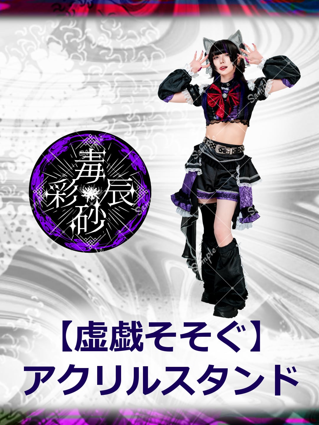 【虚戯そそぐ】のアクリルスタンド。 メンバーカラー別オリジナルデザインの台座付き。